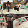 When I heard my beautiful fetish friend Alexis Taylor was in LA , I called to ask her if she’d be interested in tying me up. As expected, she of course said, “yes, she’d be delighted.” So I dressed up in my sexy new, sheer lingerie set, including g-string, garter belt, & stockings, which I knew she’d just love. The sweetness of the colors in the outfit prompted her imagination, so she started by tying me into a pleading position. I think she just wanted to see me looking cute & vulnerable while gliding & slipping around in the various positions she’d put me into on the bondage table. She even blindfolded me at one point, to make me feel even more vulnerable. Finally, she stretched me out to accentuate my lovely stockinged legs, allowing me to squirm even more. Indeed, a good time was had by all. 😉