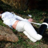 Ashley is instructed on how to give a proper blow job as she’s bound on her knees and put to work on a purple dildo